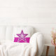 Design moderno com uma estrela rosa e branca "brilhante" sobre fundo branco e rosa. Travesseiro decorativo com um design personalizável para você personalizar com seu próprio texto, imagens e ideias. Esta é uma imagem de arte digital criada usando fotografias originais e técnicas digitais e impressa em tecido, ela não brilha ou contém faíscas reais.