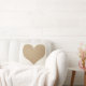 Este travesseiro branco moderno apresenta um coração de couro dourado falso.