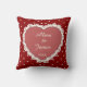 Almofada Coquette personalizável do Dia dos Namorados. O design apresenta uma foto estética de um coração cortado em um fundo vermelho com pequenos corações. O verso apresenta seus nomes e data. Esta almofada vermelha coquette é perfeita para casamentos, Dia dos Namorados e outros eventos.