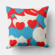 Gráficos cardíacos em vermelho, branco e azul nos almofadas confortáveis.