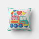 Travesseiro decorativo doce e colorido com caminhão cheio de abraços, beijos e corações, para o quarto do seu filho.