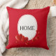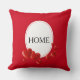Corações em casa em Travesseiro vermelho e branco. Texto doméstico e corações apenas na frente.
