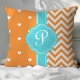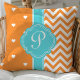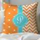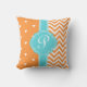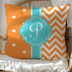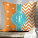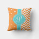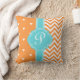 Almofada Corações e Chevron de Monograma Laranja e Turquesa