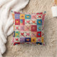 Corações coloridos e travesseiro decorativo de padrão de colcha de flores.