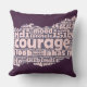 O sofisticado travesseiro decorativo Púrpura Rosa Padrão de Coragem faz parte da Coleção - Muro Roxo e Decoração Doméstica. O padrão multilíngue de tipografia de coragem e os elementos irregulares de borda permitem personalização de cores. Siga o link - Editar com Ferramenta Design - para selecionar uma cor de preenchimento e as formas e a coloração do padrão para criar um presente personalizado. Para designs personalizados, entre em contato com info@kbmd3signs.com.