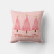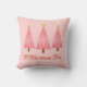 Travesseiro decorativo em uma tomada moderna de um clássico motif de árvore de Natal - três árvores em um coral, rosa pálido e cor-de-rosa profundo, com o texto "O Árvore de Natal"