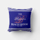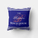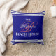 Na moda e marinho elegante da casa de praia da família de cor viva, casa de cabana ou qualquer travesseiro decorativo de decoração do monograma de férias. Monograma de cor coral inicial com tipografia em branco. Basta usar o recurso "personalizar este modelo" para inserir o nome da sua família, a data inicial e a data estabelecida.