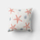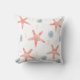 Travesseiro decorativo com estampas de coral, marinho e branco. Starfish, coral e conchas adoram ambos os lados do travesseiro decorativo. O sotaque perfeito para uma sala temática na praia.