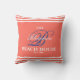 Na moda e estilo moderno de tendências estilo vivo cor de coral família praia casa monograma travesseiro decorativo de decoração, monograma azul inicial com tipografia e listras brancas em negrito. Use o recurso "personalizar este modelo" para inserir o nome da família, a data inicial e a data estabelecida.