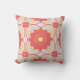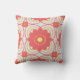 This hand‑drawn throw pillow is covered with large coral pink flowers with sunny yellow centers, surrounded by bold orange and yellow geometric accents on a cream background. The repeating pattern creates a vibrant retro style with a mid‑century modern twist. It’s a colorful accent piece for your sofa, bed, or reading nook.