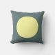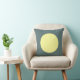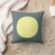 Um travesseiro com um abstrato mínimo de design em amarelo pálido em uma sutil cinza em tons esverdeados. A combinação de cores se alterna em cada lado.
