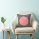 Um travesseiro com um design mínimo abstrato em círculo, em cor-de-rosa suave, em 60% de cinzas.