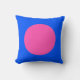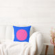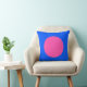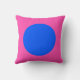 Um travesseiro com um design mínimo abstrato no círculo, em rosa-quente e azul. As cores alternam em cada lado.