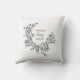 Esta almofada romântica de noiva apresenta uma bela coroa botânica ilustrada com nomes personalizados e letras de letra cursiva de amor na moda. Este lindo design preto e branco é um presente perfeito para uma noiva ou namorada. Compre nesta loja por decoração de casa elegante e presentes coordenados.