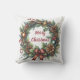 Dê boas-vindas aos convidados em sua casa com uma almofada de Natal na varanda. Esta almofada apresenta uma ilustração em aquarela de uma coroa festiva de Natal e uma saudação de Feliz Natal. A coroa foi criada com ferramentas de IA e projetada por Susang6.
