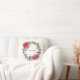 Almofada Coroa de Natal de Poinsettia em Aquarela Monograma