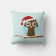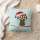 Este belo travesseiro decorativo apresenta uma ilustração vetorial adorável de uma coruja marrom e azul vestindo um Papai Noel que tocava um galho de árvore em um fundo de neve. Perfeito para decorar qualquer lugar para as férias de inverno!