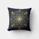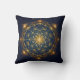 This is a stunning digital design that embodies the art of the Mandala and Sacred Geometry. It features intricate, luminous golden lines set against a deep, dark blue (navy) background, creating a dramatic and luxurious contrast. The design is centered around a brightly glowing core that radiates warm light. The complex structure combines star shapes, triangles, and flowing circular/spiral patterns, evoking a sense of depth, balance, and spirituality. It is an ideal representation of divine beauty, meditation, or opulence.