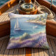 Almofada Costa Lavanda do Mediterrâneo com embarcações de n