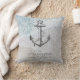 Um travesseiro decorativo náutico de spray oceânico de caserna de aquarela, com seu nome de família e coordenadas personalizadas mostradas com uma bela tipografia de roteiro com sorifes longos elegantes. Procure as coordenadas da sua cidade na praia em qualquer local de mapeamento e insira-as no campo de modelo fornecido.