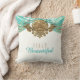 Travesseiro Personalizado Elegante de Praia de Glam de Dourado e Teal Sea Shell.