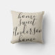 Um travesseiro fantástico do estilo da casa da quinta com "casa doce Home" e seu nome de família imprimiu em um fundo bege no roteiro moderno elegante. Faz um presente maravilhoso para toda a família, você pode usar o modelo para personalizá-lo para um presente original.