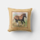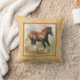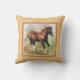 Um travesseiro decorativo ou um coxim quadrado com um quadro da beira nas máscaras do tan bege e claro, com uma pintura digital de um potro cantering do cavalo de esboço da azeda em um pastel coloriram o fundo.