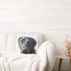 O conforto snuggling até um cão favorito. Este labrador retriever preto novo considerável é absolutamente "Labradorable".