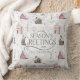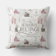 Um padrão de aquarela sem costura com pequenas casas confortáveis aninhadas nas passagens de neve entre ramos de árvore negras e folhas é o design perfeito para um Natal em casa. Disponível em duas paletas coloridas de ventre, esta versão apresenta tons de bege rosa, prateado e macio. Fornecemos o texto opcional 'Saudações da Época' e você pode personalizar este travesseiro decorativo de Natal festivo com o(s) seu(s) nome(s) e data. Procure ID985 para ver todos os produtos coordenadores com este adorável padrão de Natal.