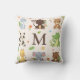 Uma almofada bonita para uma menina ou um menino com a sua inicial no centro rodeada por ilustrações animais.