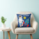 Um presente de travesseiro de astronauta legal para o quarto de uma criança. Tem um astronauta infantil incrível ao lado de um foguete na galáxia e estrelas no céu noturno. O quarto de meninos divertidos decor.