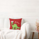 Legal dinossauro verde vestindo um chapéu vermelho de Papai Noel. Um travesseiro de Natal incrível para uma criança que gosta de dinossauros e paleontologia.