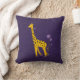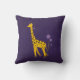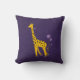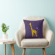Travesseiro bonito violeta do miúdo com um girafa engraçado que mordisca em uma flor violeta e que guardara algumas flores com sua cauda ao patinar com skates de rolo que as rodas são feitas das flores.