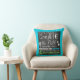Criar o travesseiro inspirador do olhar do quadro do trajeto com design de texto branco em um fundo preto do olhar do quadro com um pop da cor em azul e em verde e uma beira do azul em um lado, verde no verso. O texto lê "não segue… cria o trajeto que sabe que às vezes a viagem é melhor do que o destino"!
