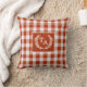 Elegante e Rústico Travesseiro de Lançamento com Crista de Monograma Xadrez Laranja-Vermelho.