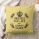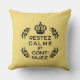 Almofada crista preta amarela Francês Fique calmo e continu