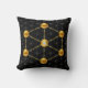 Almofada de lançamento com cubo de Metatron dourado apenas na parte frontal em fundo preto. O cubo de Metatron é derivado da estrutura da flor da vida. Ideal para meditação.