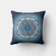 O travesseiro decorativo projetou com um cubo de prata de Metatrons em um fundo azul enigmático.