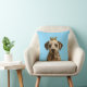 Cachorro no travesseiro decorativo Dourado da Coroa de Ricaso. Um adorável cachorrinho Dalmático sobre um fundo azul claro. Ideal para amantes de animais/cães.