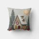 Esta almofada é uma cena que retrata a paisagem natalícia no inverno com uma sensação quente e de conto de fadas. Uma pequena casa coberta de neve é a peça central, e as árvores de abeto cobertas de neve ao redor da casa somam-se à atmosfera de Natal. Há uma camada espessa de neve no telhado da casa e na borda das janelas, e uma coroa de Natal vermelha pendura na porta da frente da casa, dando-lhe uma sensação acolhedora. Luz quente vaza do dentro das janelas, fazer que a casa se sinta confortável mesmo no frio do inverno. Em volta da casa, caixas de presentes de Natal decoradas com papel de embrulho vermelho e fitas amarelas são colocadas na neve, e bolas decorativas vermelhas são penduradas nas árvores de abeto para aumentar o brilho. Ao fundo, uma grande lua amarela se levanta com uma leve queda de neve, que captura a atmosfera pacífica e romântica do inverno.