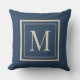 Almofada Custom Blue & Vanilla Framed Monogram Throw Pillow