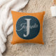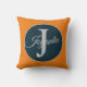 Modern custom orange Light greay ocean blue Monogram throw pillow