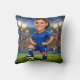 Kick boring home decor to the sidelines with this personalized soccer caricature accent pillow. This eye-catching design features a high-definition, cartoon-style soccer player in a blue kit, standing victoriously under stadium lights. But here is the winning play: You can swap the face with any photo you choose!