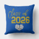 Celebrate your volleyball player's dedication with this eye-catching, double-sided personalized pillow! The front features the player’s number in bold, oversized font, along with their name, school name, mascot, and a volleyball heart graphic—all in spirited blue and yellow school colors. Flip it over to reveal a matching “Class of 20XX” design with a volleyball heart, making it perfect for senior night, graduation gifts, or dorm room decor. A fun and meaningful way to show pride in their volleyball journey!