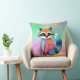Um guaxinim branco é ilustrado com padrões vibrantes e coloridos que cobrem o pelo. Sua cauda é especialmente flagrante com matizes cor-de-rosa, complementando o design brincalhão.