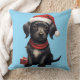 Cute Black Dog at Christmas with a Santa hat and scarf