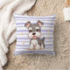 Add a touch of whimsy and comfort to your home with this adorable pillow! Featuring a cute Schnauzer puppy on a stylish lavender striped pattern, this pillow is the perfect accent for any couch, chair, or bed. It's a must-have for any dog lover or anyone looking to add a pop of personality to their decor.