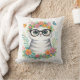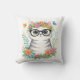 This charming illustration features an adorable fluffy white and grey striped cat, complete with stylish black-rimmed glasses. The cat is crowned with a vibrant wreath of colorful flowers and lush green leaves, further adorned with playful butterflies and sparkling elements. The cheerful and whimsical design evokes feelings of spring, nature, and intellectual charm, making it a perfect blend of cute and smart.