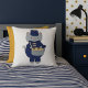 Do you love cute pillows? This throw pillow features a cute gray cat playing the snare drum while wearing a navy blue and gold marching band uniform.