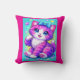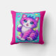 This adorable pillow design features a sweet pastel kitten with big sparkling eyes, soft pink and purple fur, and a charming blue bow. Set against a vibrant turquoise background with tiny hearts and star accents, the design captures a playful, cheerful, and cozy aesthetic. The soft shading, glowing highlights, and whimsical details create a dreamy, feel-good look perfect for adding warmth and personality to any space.